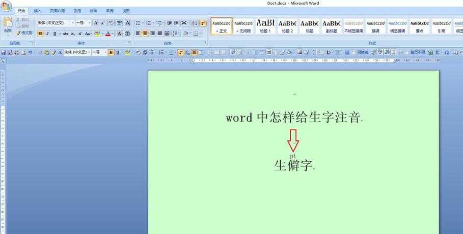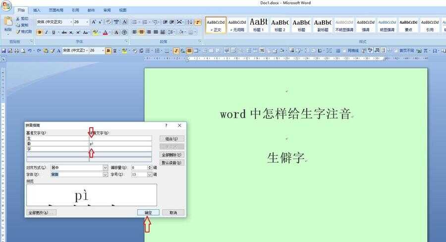 4.单击“确定”按钮,在生字上面注音后的效果如下图:
