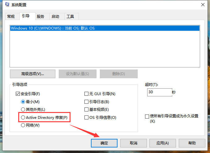 6、然后勾选active directory修复,再点击确定,最后点击电源重启点击就可以了。