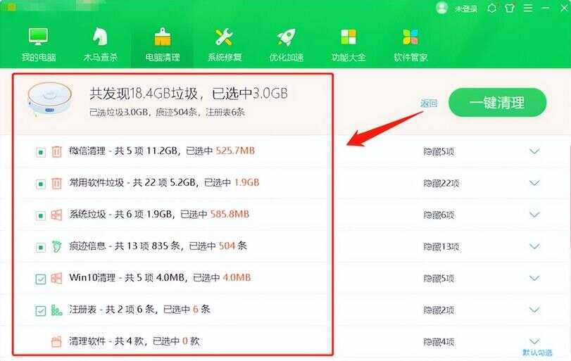 3、完成后,在弹出的窗口中我们可以自由选择需要清理的系统垃圾文件,勾选后点击【确定】删除即可。