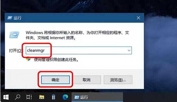 1、按下【win+r】调出运行框,输入【cleanmgr】,回车。