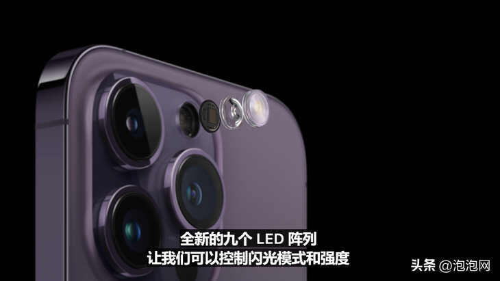 iPhone 14 Pro系列还对于闪光灯进行了全新的升级,其配备了全新的9灯组系统,提升了近2倍的亮度表现,均匀度提高3倍,并且可以实现更多的亮度调节,可以根据被摄物体的远近来自动调节所需亮度。