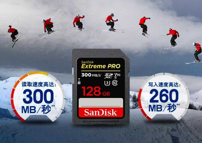 当然,如果你的微单更高端,具有更快的连拍速度和视频规格,上面的这款就有些不够用了,比如你的相机是佳能R5或者索尼A7S3、松下S1H、尼康Z9、富士X-H2S等机型,就需要选择性能更强的闪迪8K高性能SD卡了,这种闪迪8KSD卡读速可以达到300MB/s ,写入速度也能够达到260MB/s。