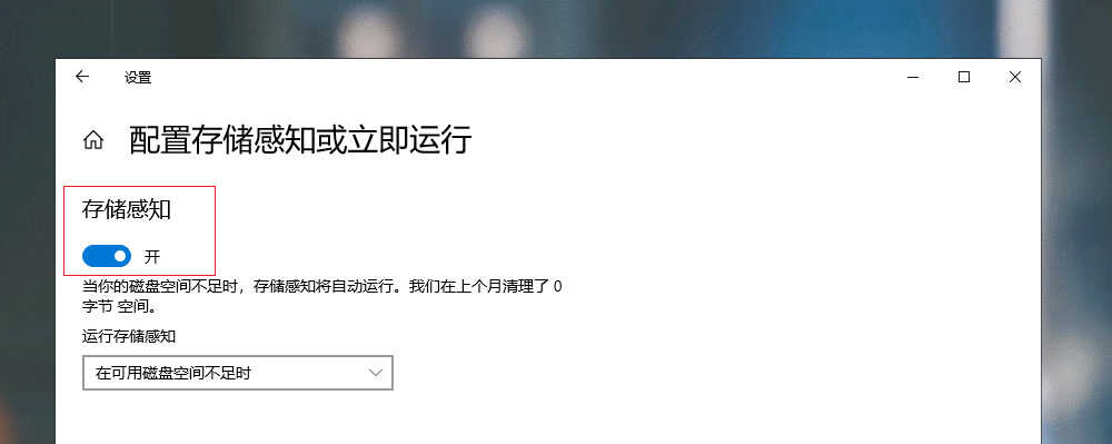 在系统界面左侧找到【存储】选项,然后在右边找到【配置存储感知或立即运行】。