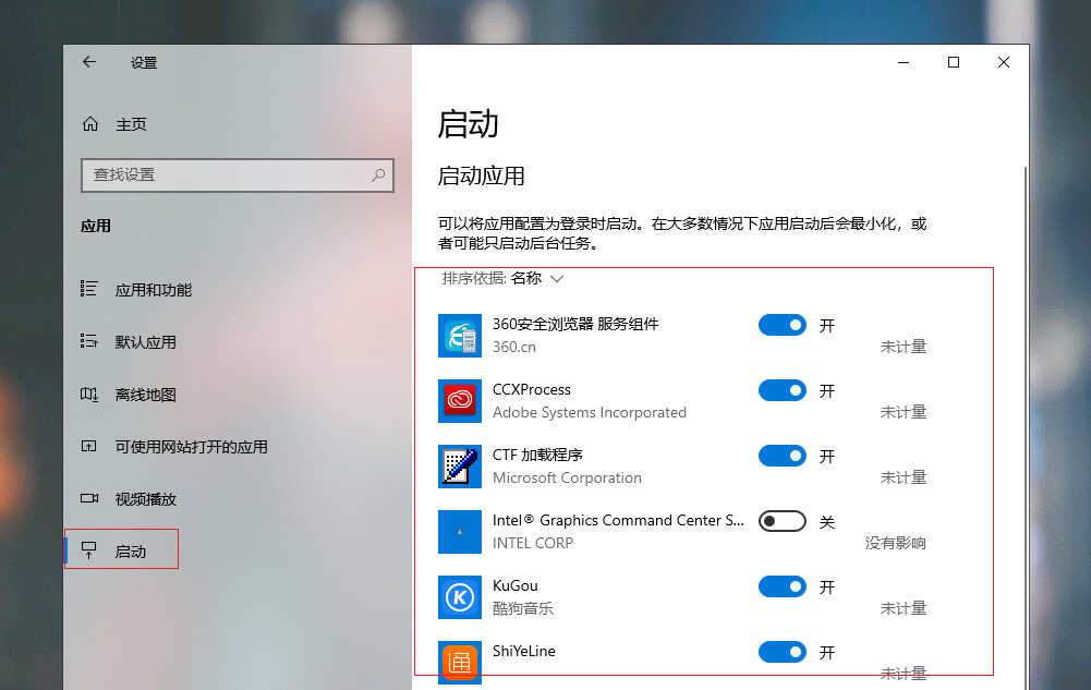 在Windows设置界面,点击【应用】进入,在左侧找到启动选项,把里面没有用的启动项全部关掉就可以了。