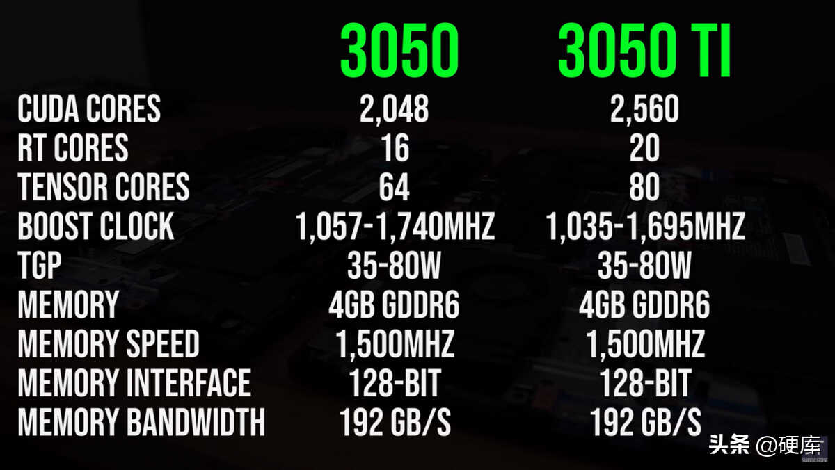 搭载3050和3050ti的笔记本已经上市有不短的时间了,是目前游戏本比较主流的显卡配置。同样作为入门端的两张N卡,他们之间的性能差距有多大呢?游戏体验的区别是否有明显的差异呢?首先让我们看一下二者的参数区别。