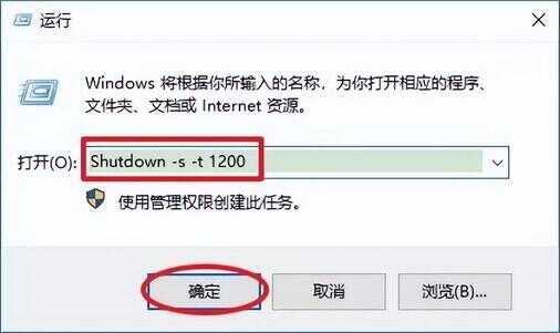 2.输入Shutdown -s -t 1200 后点击【确定】。