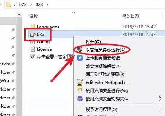 4.打开解压后的文件夹,鼠标右击【023】选择【以管理员身份运行】。