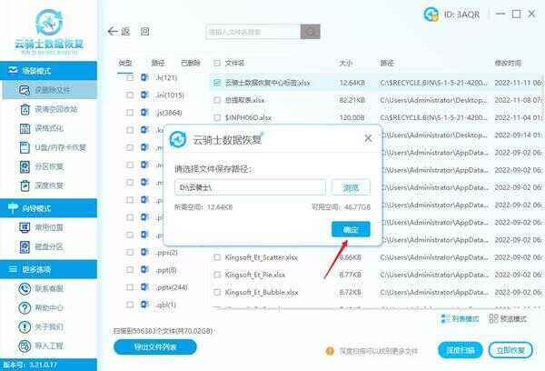 4.找到所需文件后进行勾选,点击下方的“立即恢复”按钮,将文件保存到其他磁盘即可完成误删文件恢复操作。