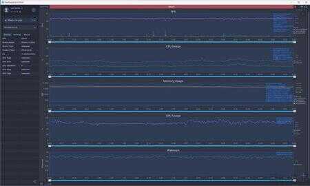 首先,我们来看看《王者荣耀》的成绩。很显然,即便是iPhone 13 mini只有4个GPU核心的A15,在面对这款游戏时也不会有任何压力,就更不用说配备“满血版”A15,性能还要强一截的iPhone 14 Plus了。但是深入探究监测数据会发现,在同样的画质设定下,iPhone 13 mini的GPU占用率明显要高于iPhone 14 Plus。