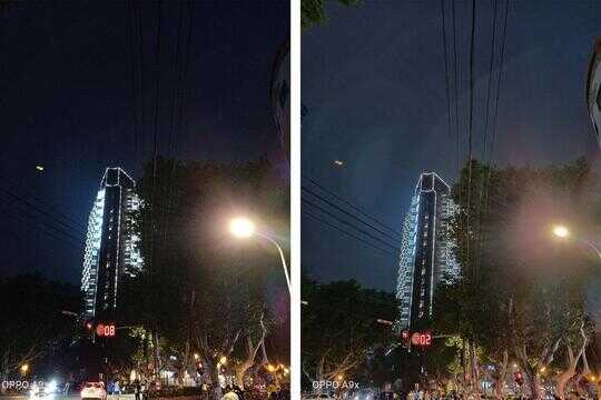 超清夜景2.0的加持,让OPPO A9x在暗光的环境下也能拍出明亮的照片,并且还解决了夜间拍照噪点过多、亮处曝光过度等问题。超清夜景2.0算法全新升级,使用复合多帧降噪和多帧HDR技术,实现降噪、手持防抖、高光压制、提升动态范围等等一系列复杂的算法,只需几秒即可拍摄亮处不过曝,暗处有细节的好夜景。