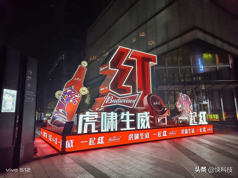 相比于部分手机把夜景排成白天的成像效果,vivo S12还是保留了夜晚亮暗分明的感觉,但在细节上却有所保留,并没有因为怼灯直拍的缘故导致噪点暴增。