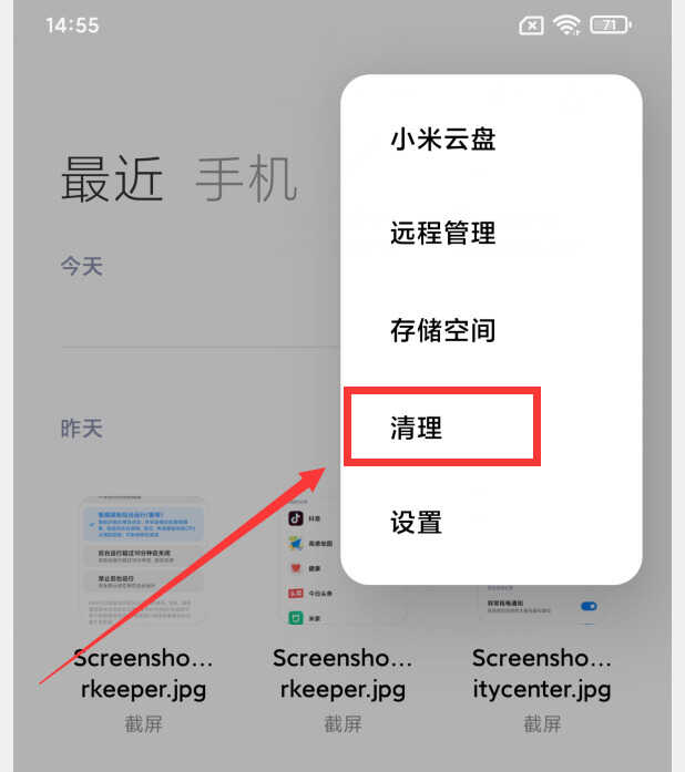 然后点击下拉菜单里的“清理”按钮,就可以清理文件管理的垃圾。