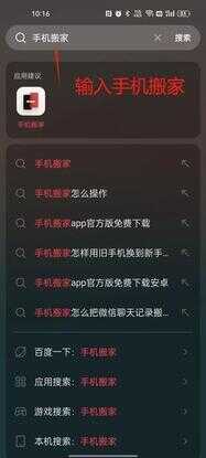 输入之后,下方会出现手机搬家APP图标,点击后稍作等待就会自动打开,随后选择“我是新手机”,OPPO、一加、realme等旧设备可以用同样的操作安装“手机搬家”软件直接迁移,其他品牌根据内部操作扫码下载对应软件即可完成迁移。