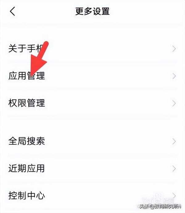 打开更多设置后,点击应用管理,如下图所示。