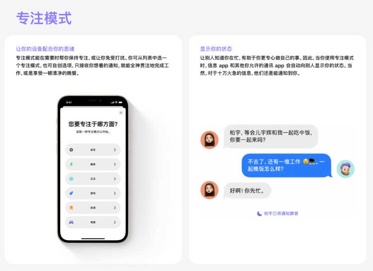 这两个功能单独拿出来,都显得比较鸡肋,可随着iOS 15专注模式推出后,一切都被串联起来。