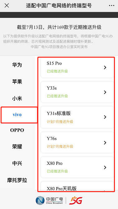 一、vivo哪些手机型号支持广电4G/5G网络?