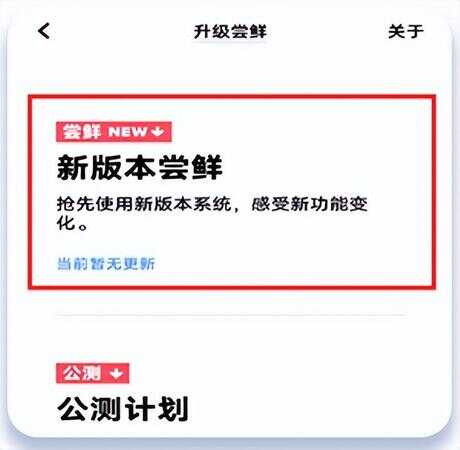 (3)进入升级尝鲜界面(选择:新版本尝鲜)
