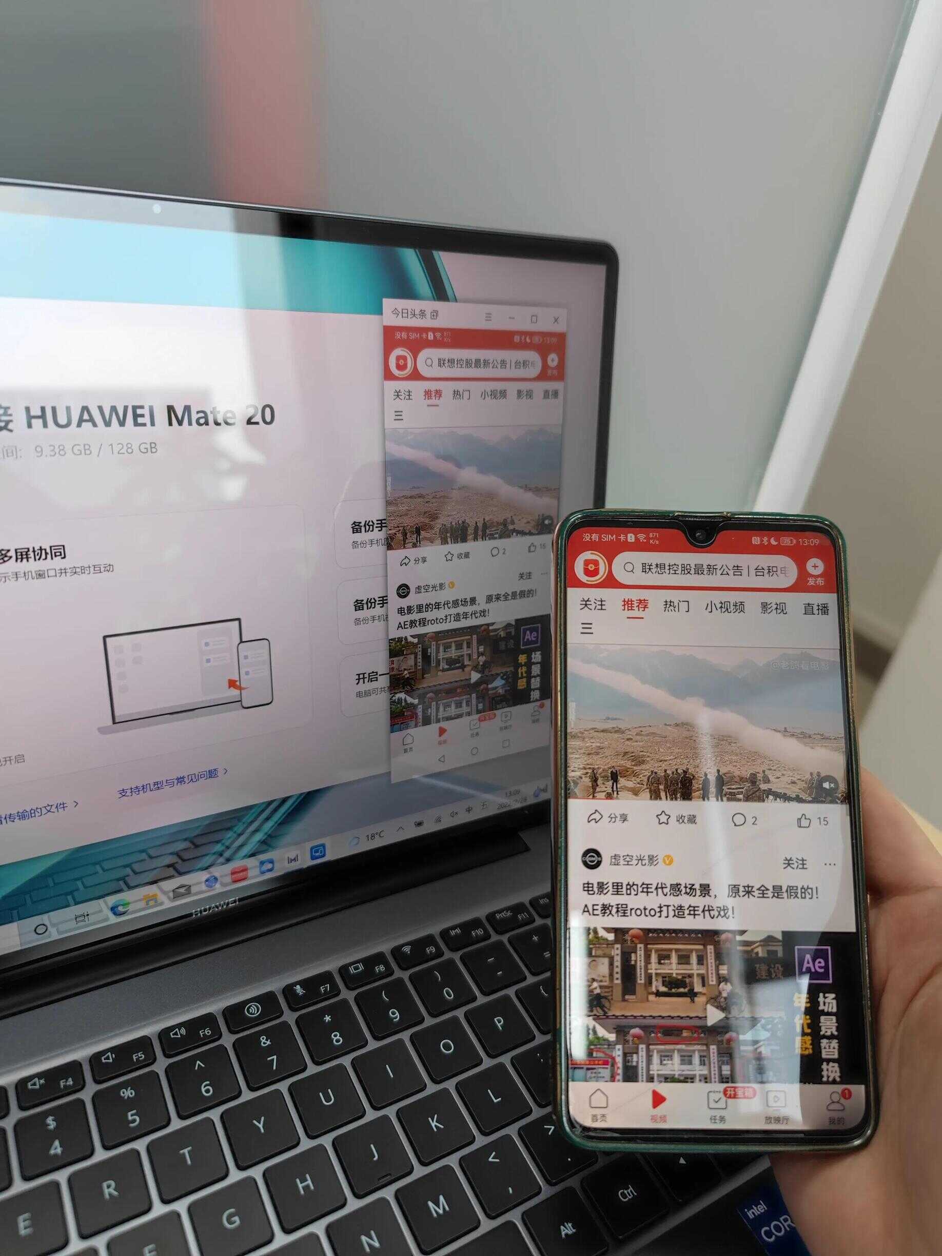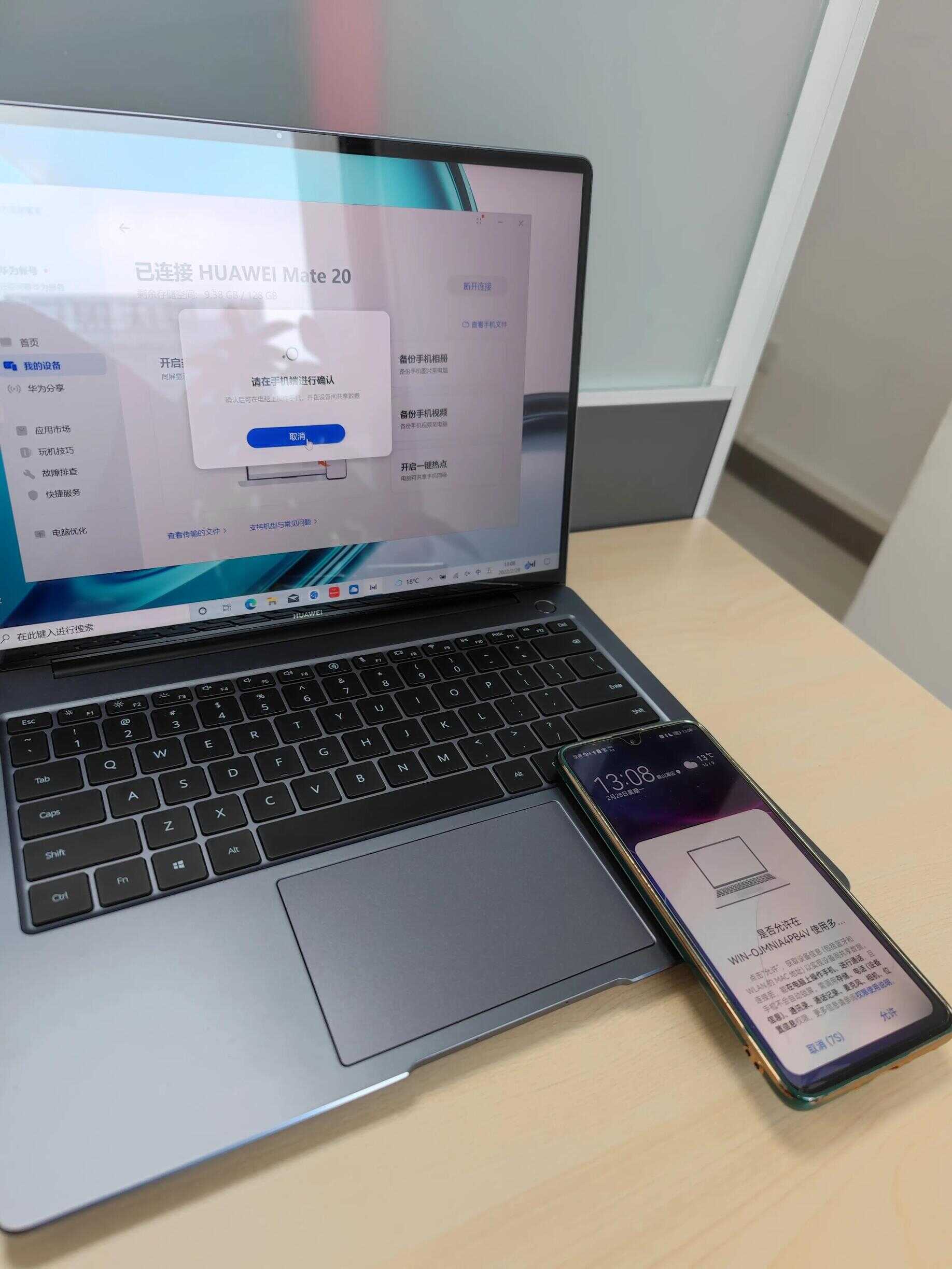 开箱之后,试了一下华为自带的多屏协同,直接到华为电脑管家里面,需要华为的手机,同一个wifi网络,手机蓝牙、NFC都要打开。手机放在电脑右下角(NFCD碰触),即可自动开始多屏协同。确实非常方便,文件、图片,随意跨屏,未来在投影仪上演示项目也会很方便。