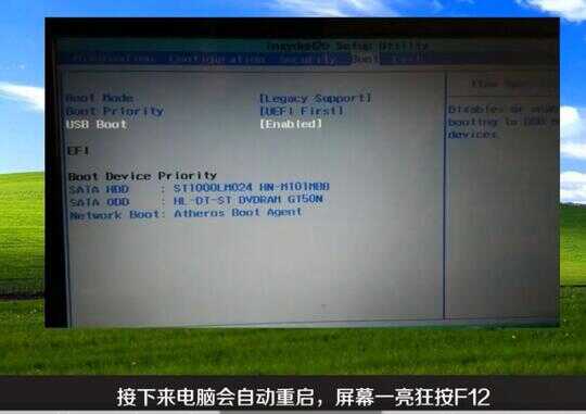 回车键接下来电脑会自动重启屏幕一辆不断的按f 12键进入布设置界面