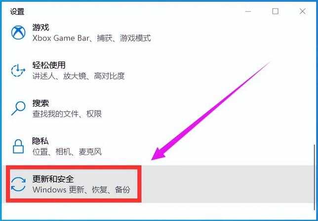 然后在打开的设置窗口里面,点击“更新和安全”选项;