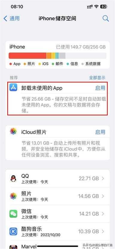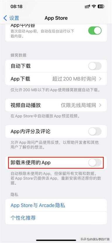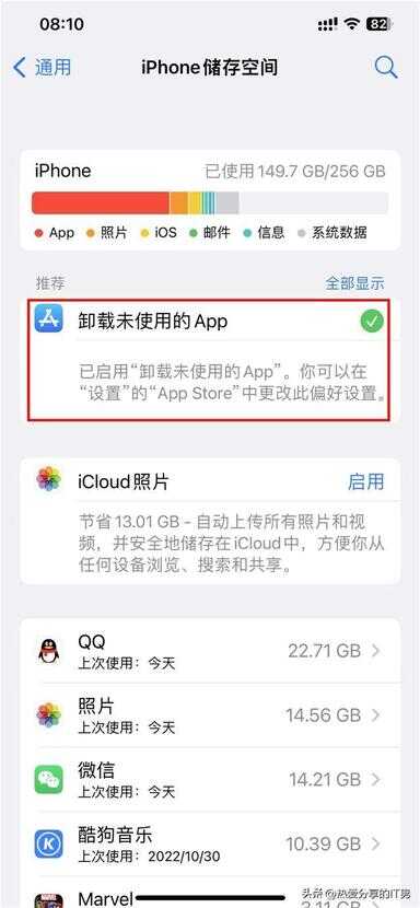 iPhone 这个储存空间不足时自动卸载未使用的App以清理出可用空间的功能还是很不错的,有需要的小伙伴赶快试试吧。
