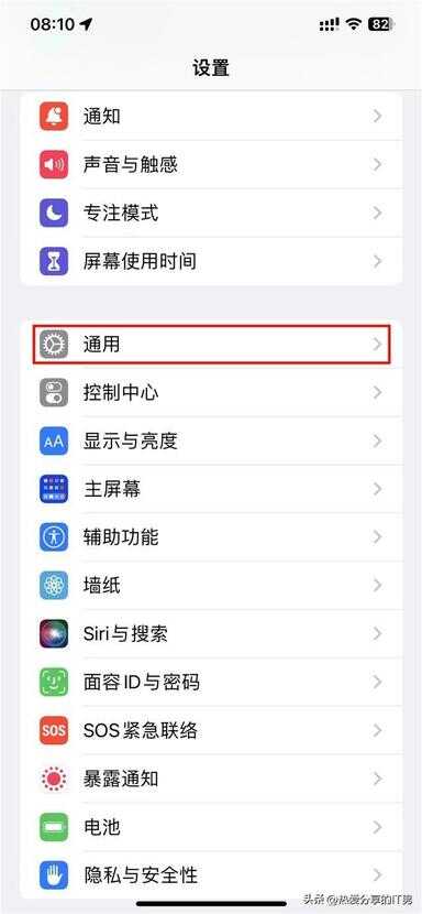 1、轻点主屏幕“设置” App,下滑找到并轻点“通用”。