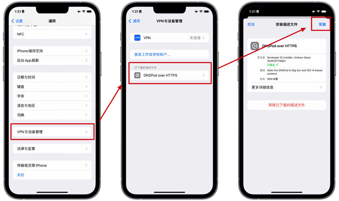 所以要解决这个问题,我们需要给iPhone安装一个描述文件(下文获取),把iPhone的DNS解析强制改成微信的东家(腾讯)的 DNSPod 服务,即可解决了,这个服务是免费使用的。