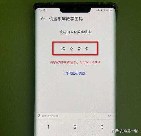 不喜欢长数字密码的,直接选择设置4位数字密码,这样解锁也方便。在密码设置界面,输入4位数字,确认之后设置完成。