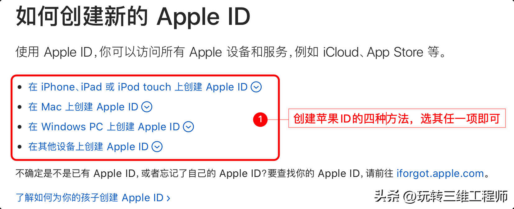 步骤四:根据图1-4创建苹果ID的四种方法,选择其中任意一种方法即可。