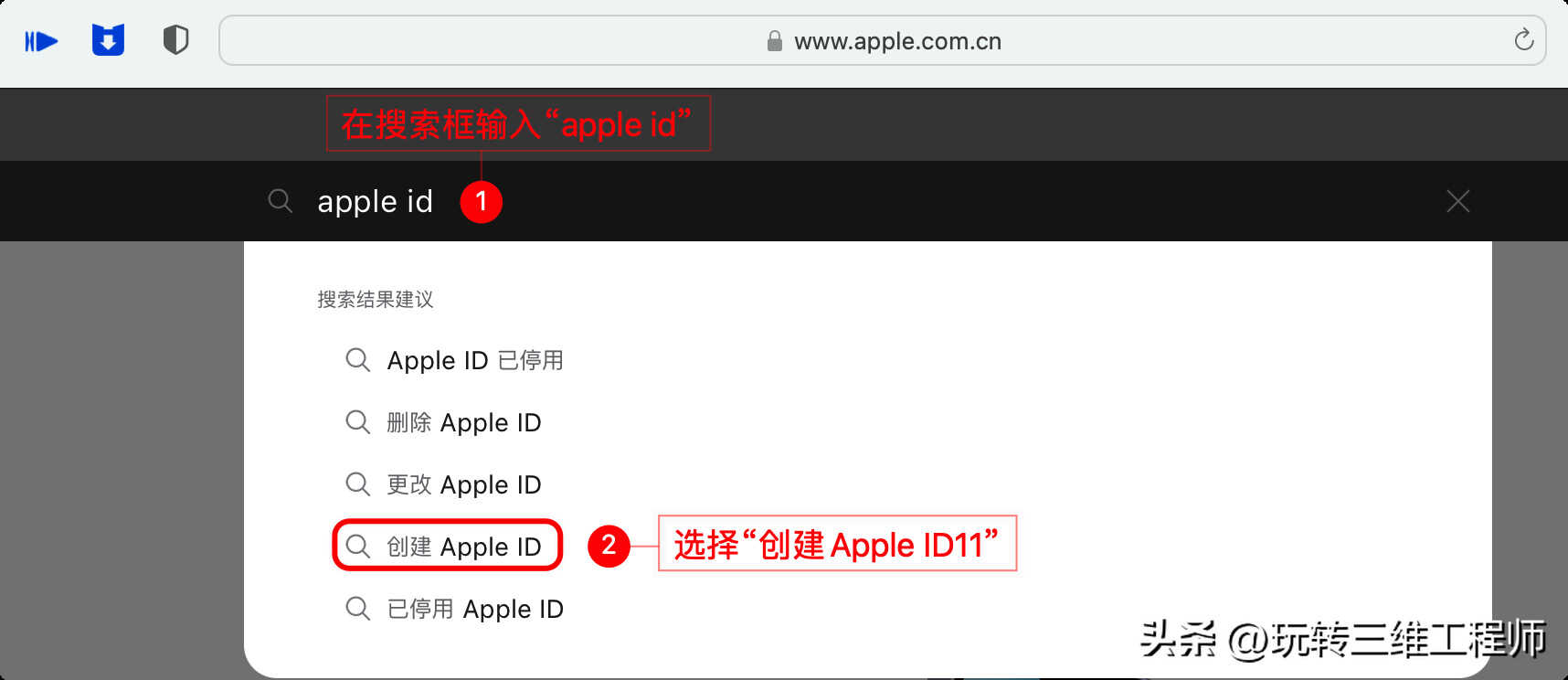 步骤一:将浏览器输入苹果官网地址:https://www.apple.com.cn,按下图步骤执行,如图1-1所示。