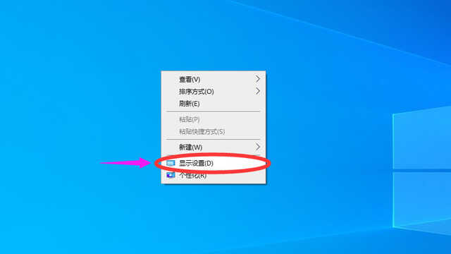 (1)在电脑屏幕空白处单击鼠标右键,然后在弹出菜单中选择【显示设置】选项用鼠标左键单击