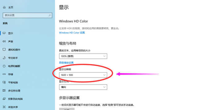 (2)打开显示窗口后,点击【显示分辨率】下面的方框