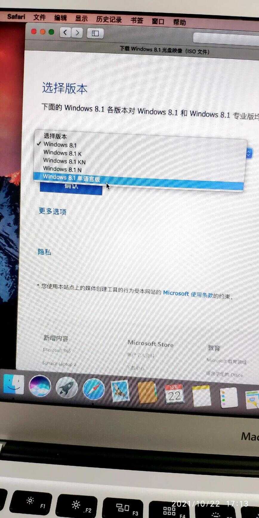 升级MacOS的版本到11.6,再执行上面的安装,问题依旧。后来我退而求其次,尝试安装别的版本的Win系统,经测试这个本的Mac系统最低只支持到Win8,最高支持到Win10,Win7和新推出的Win11都不支持。我下载了Win8的安装文件再次尝试安装,Win8最后安装成功。