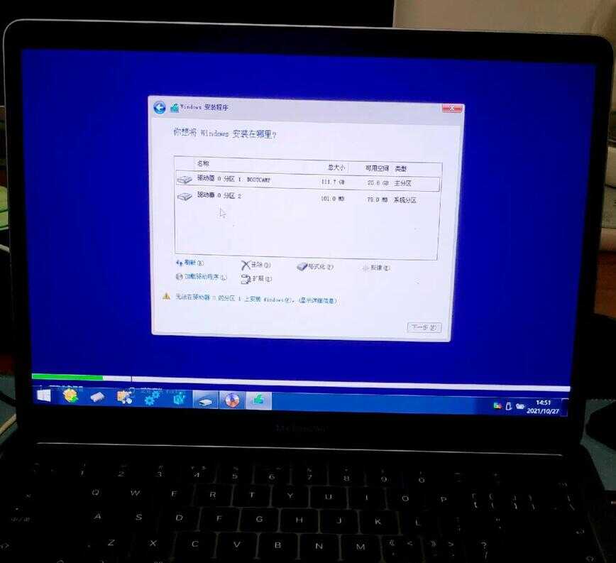 这次遇到两个问题,一个问题是我使用上次操作Air的经验先在Mac下规划好Windows的两个分区后使用U盘启动安装Win10的时候找不到这块Mac的内置硬盘。