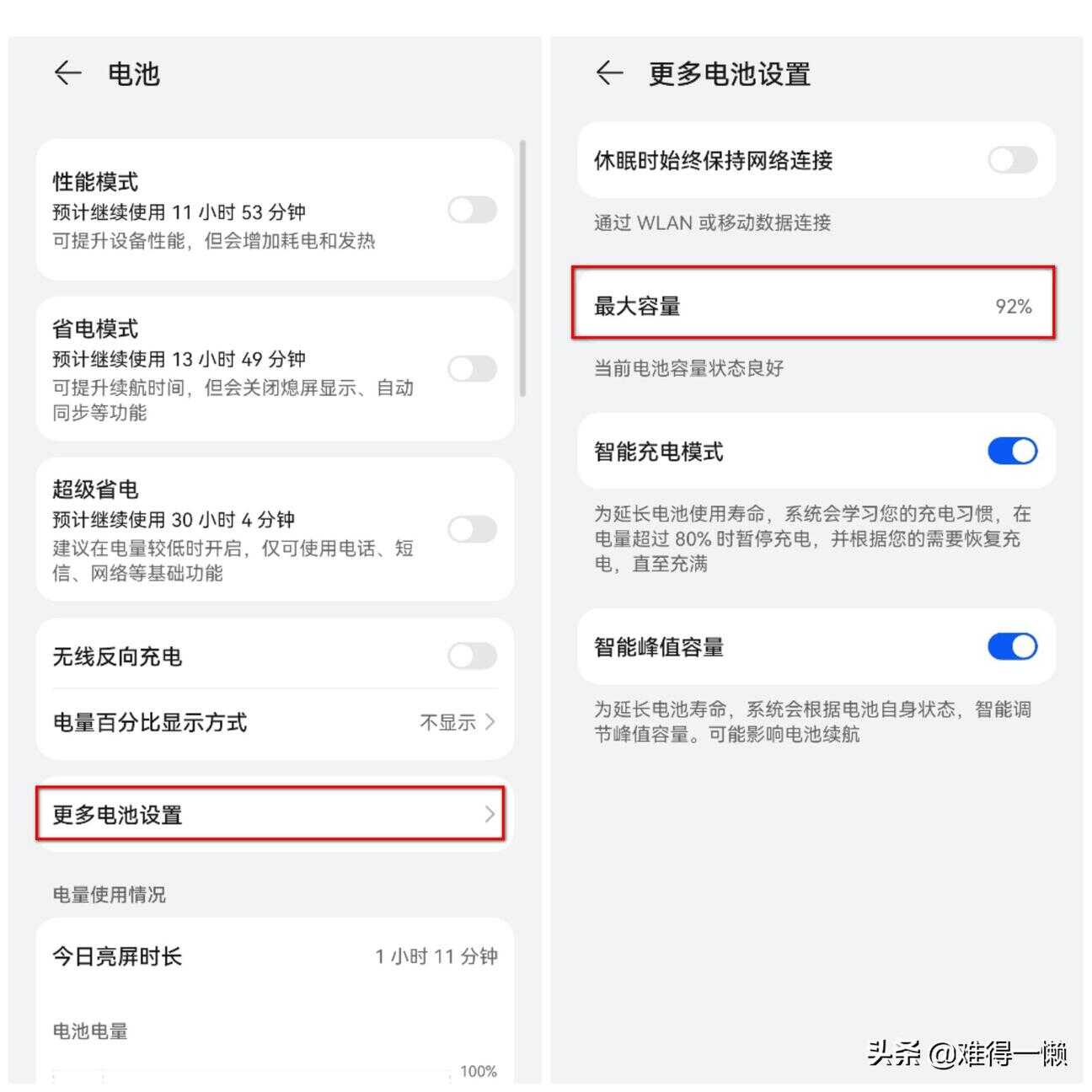 手机电池健康度数值,打开更多电池设置,在最大容量里面查看。这里会显示电池当前的最大容量以及状态。