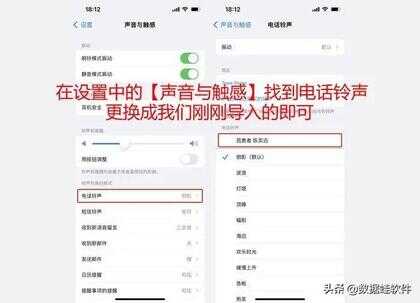 第六步:在设置中的【声音与触感】中找到【电话铃声选项】,就可以将我们刚才导出的音乐设置为苹果手机铃声啦!