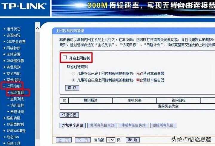如非必要,不建议大家启用路由器中的“上网控制”、“家长控制”、“无线MAC地址过滤”等功能,因为设置不合理,会导致用户自己的无线设备也无法上网。