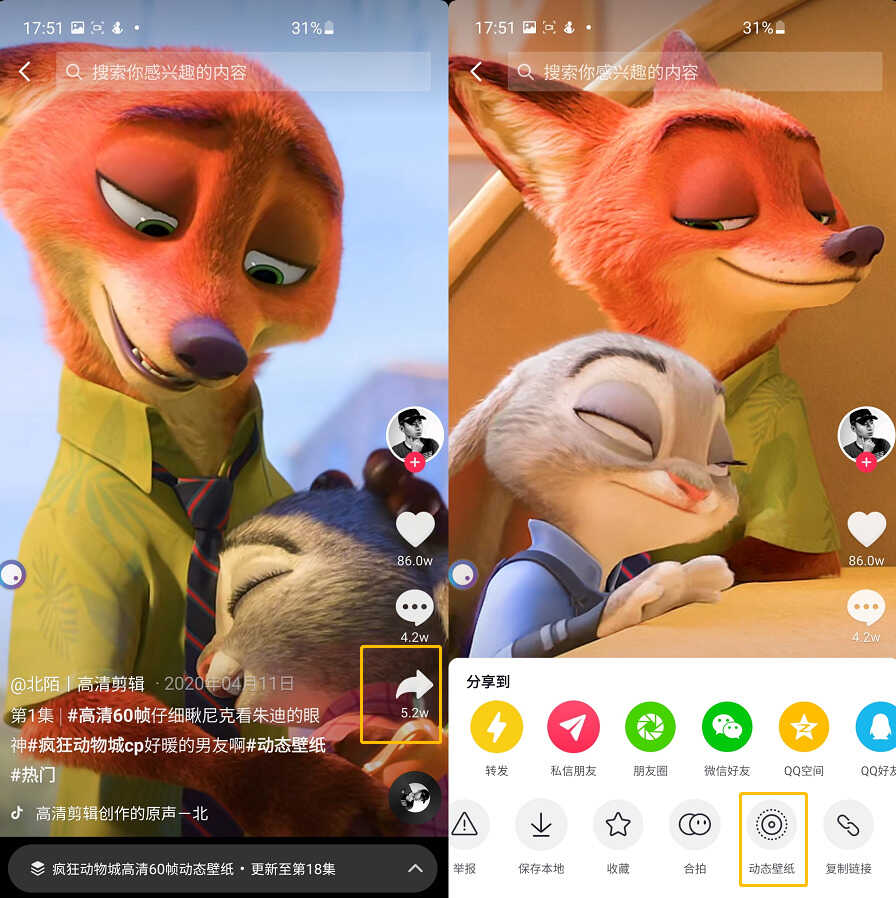 想换一张酷炫的动态壁纸,是不是可以有一些创意呢?动态壁纸除了在主题商店中可供选择下载,你也可以在短视频平台选择你喜欢的小视频,也可以用它来当作动态壁纸。
