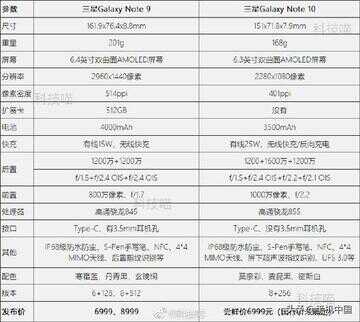 去年8月份,三星给我们带来了Note9系列。今年8月8日,三星在纽约正式发布了Note10系列。时隔一年,三星Note10有什么样的配置?对比Note9有什么区别?又有哪些地方升级了呢?近日,有网友发布了一张三星Note9和Note10的硬件参数对比图,我们一起来看看。