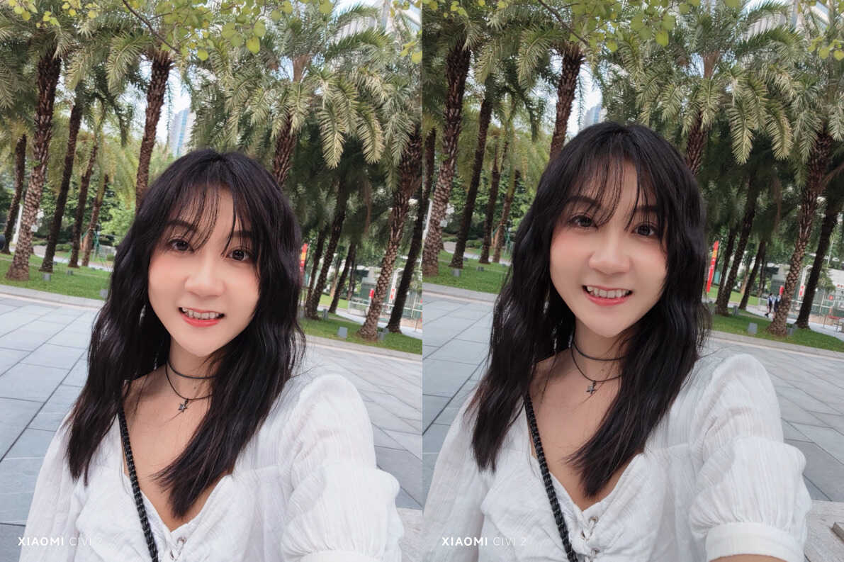 除此之外,小米Civi 2 的前置还提供「经典美颜」与「质感美颜」两种美颜风格可选,经典风格能展现出更加美白的效果,而质感美颜则拥有更高清的细节呈现,色彩更加自然,也更显立体感。