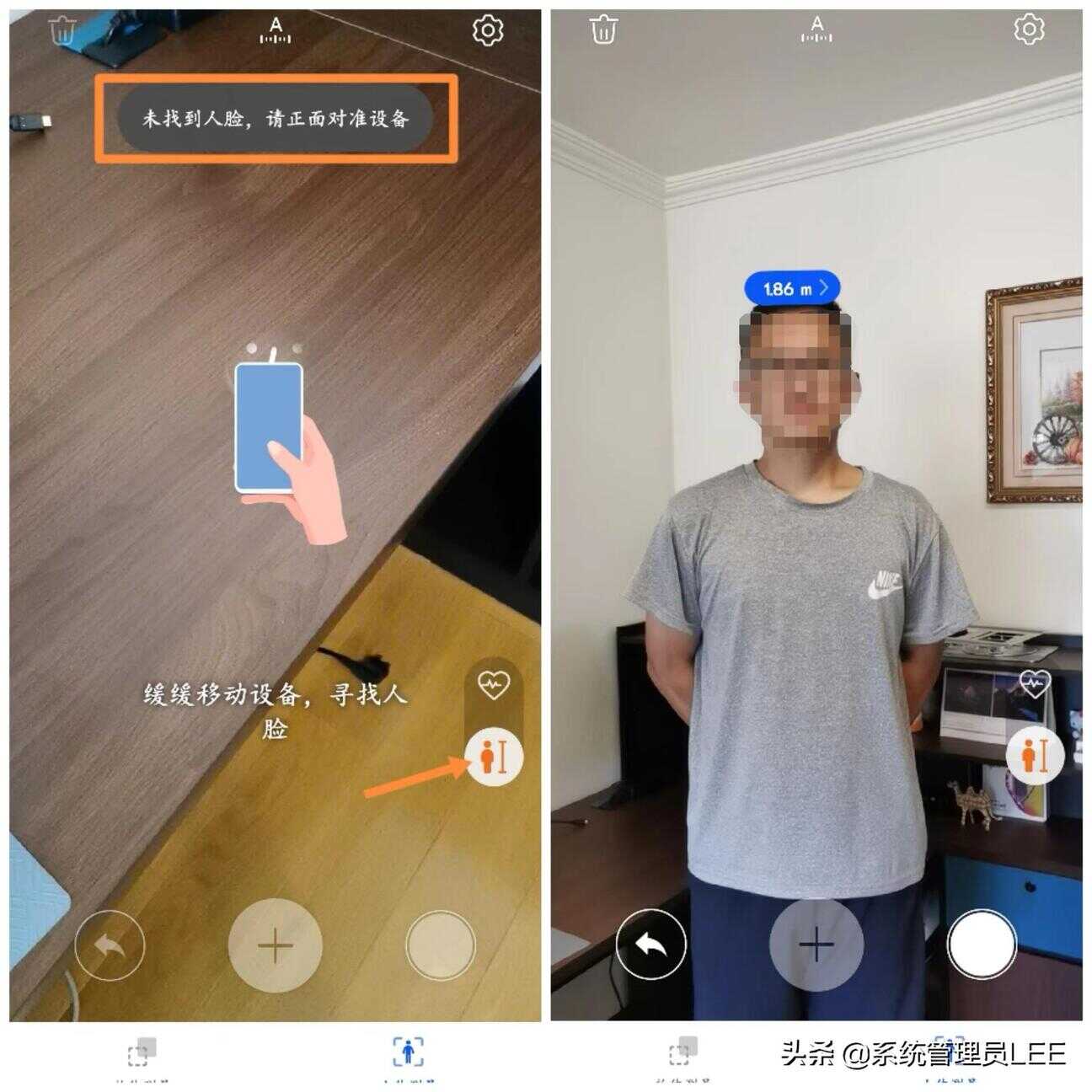 AR测量身高点击右侧身高图标之后,需要将手机摄像头对准人脸,即可快速识别身高。
