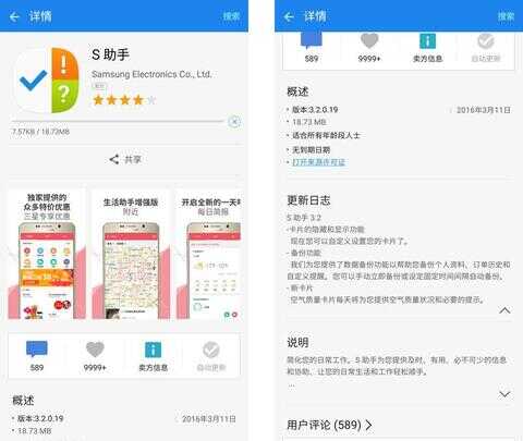 S助手为系统自带程序,可以卸载,可在三星自带的应用商店中获取最新版本,理论上说非三星的手机也能下载和安装,而在Note 5中,S助手更被深度整合,在更新至最新版本的系统后,只要在任意界面双击home键即可启动S助手。