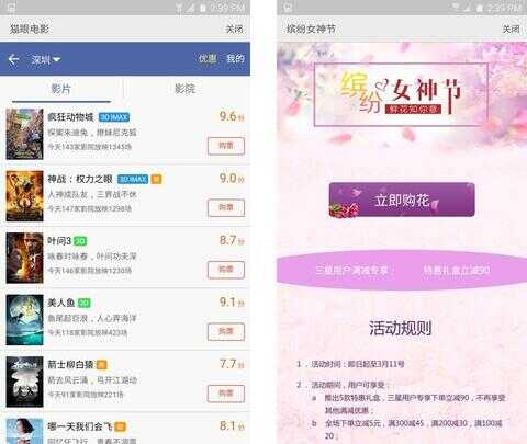除了普通的大众化服务以外,S助手还有针对特殊节日的特殊服务,例如三八妇女节的送花服务,三星用户还能享受满减的优惠,整个界面的融合非常和谐。