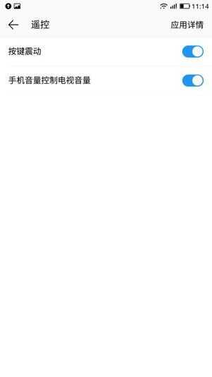 按右上角的设置,可以看到按键震动开关和手机音量控制电视音量的开关,小细节,体现了真服务。