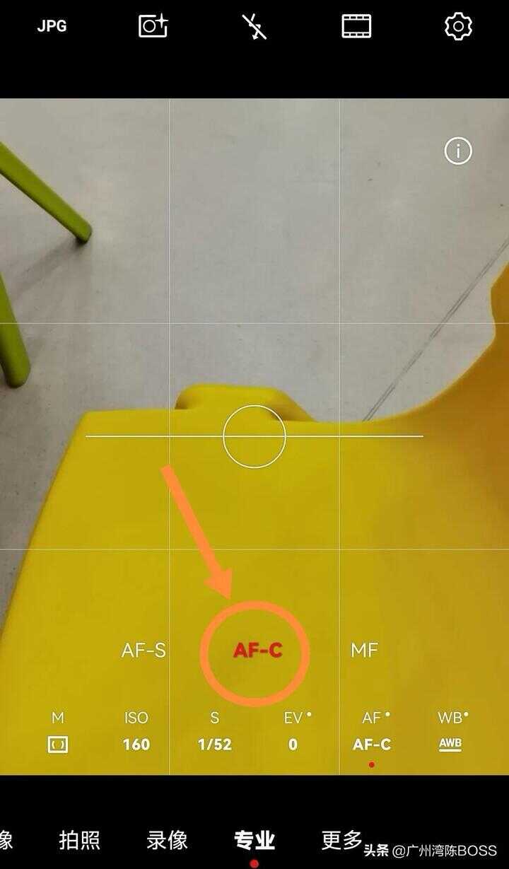 点击“AF”,选择点击中间的“AF一C”就可以了。也可以根据个人的拍摄需求来选择哪种模式。