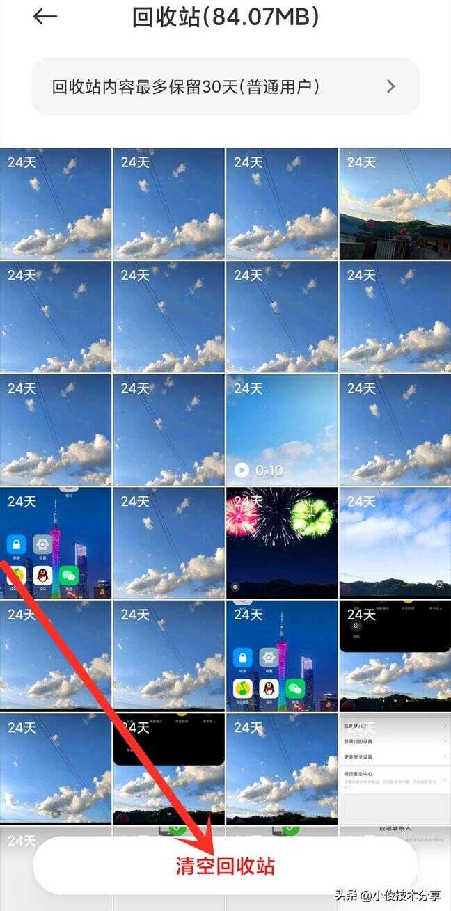 这些需要注意的是,一旦点击了清理,这些照片和视频就会被永久删除,而且无法恢复和找回,因此删除时候要慎重,当然如果你在手机中,误删了照片和视频,那么可以在回收站这个文件夹里面找回!