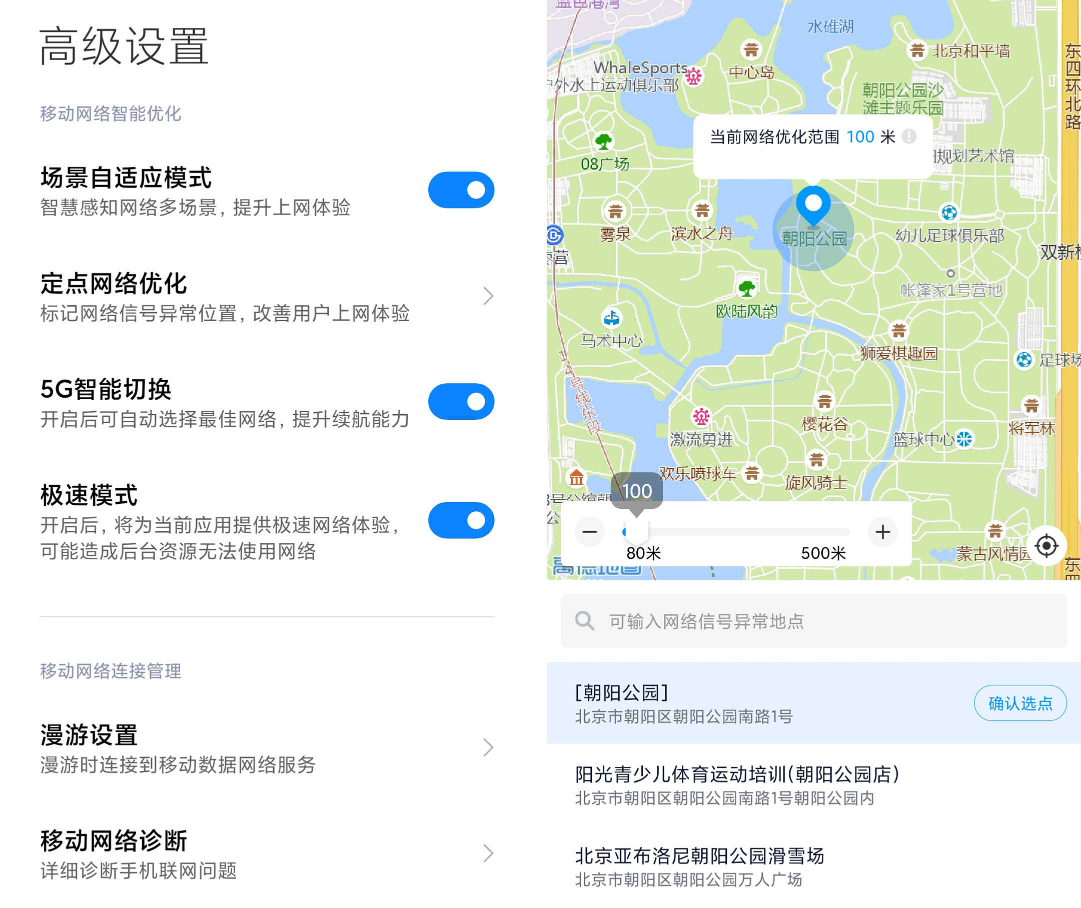 而如果你所在的地方不属于以上任何一种场景,这项功能也并不会「失效」。预置 8 个场景之外,它还允许用户根据自己的实际使用需求手动添加地理围栏标记网络数据,下次再来到同一位置,手机便能自动优化网络。