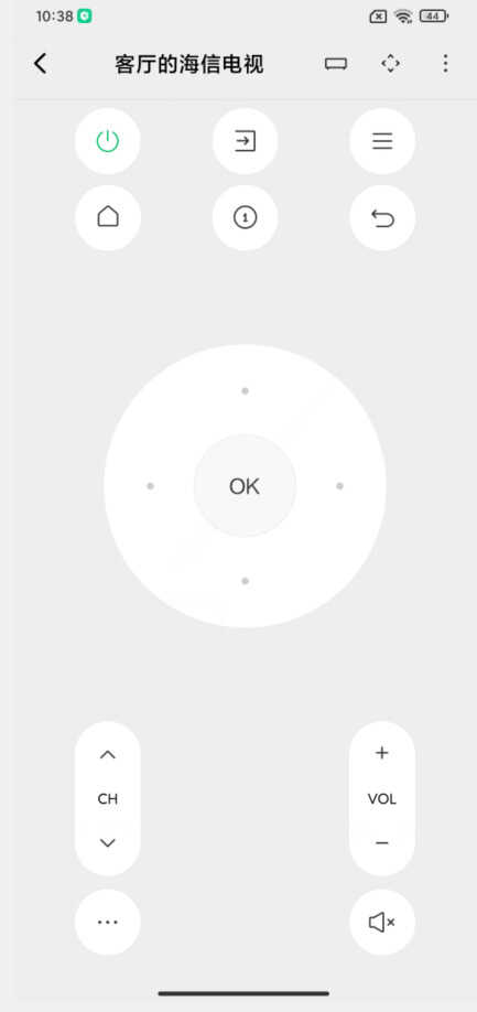 功能跟海信电视机原装遥控器的功能是一样,点击左上角的“开关”键,就可以打开电视机,点击“开关”键旁边的“开门”键,就可以切换电视机的“信号源”,点击底部的“CH”上下键,就可以切换电视频道。添加其它家电的遥控器的方法,是一样的,这里就不做过多的介绍。