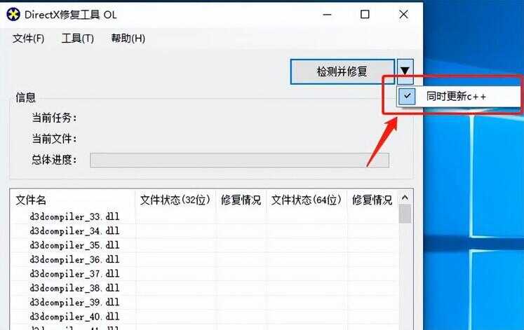 1、我们现在网上下载DirectX修复工具,然后直接启动修复程序,点击检测并修复。