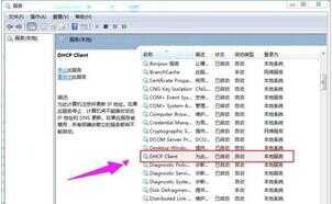 6、服务里边都是有关电脑正常运行的本地服务,在里边找到“DHCP Client”这项服务。